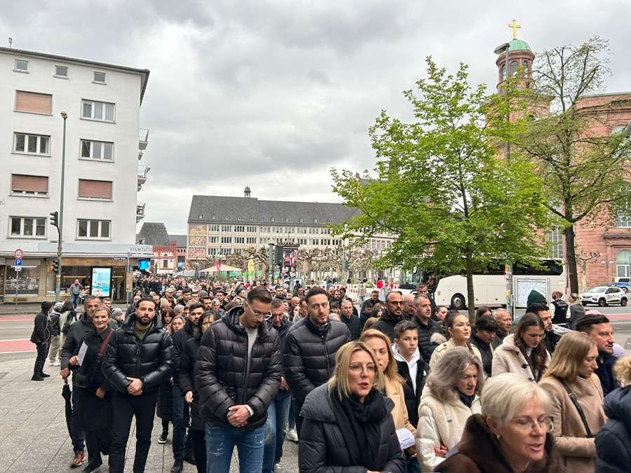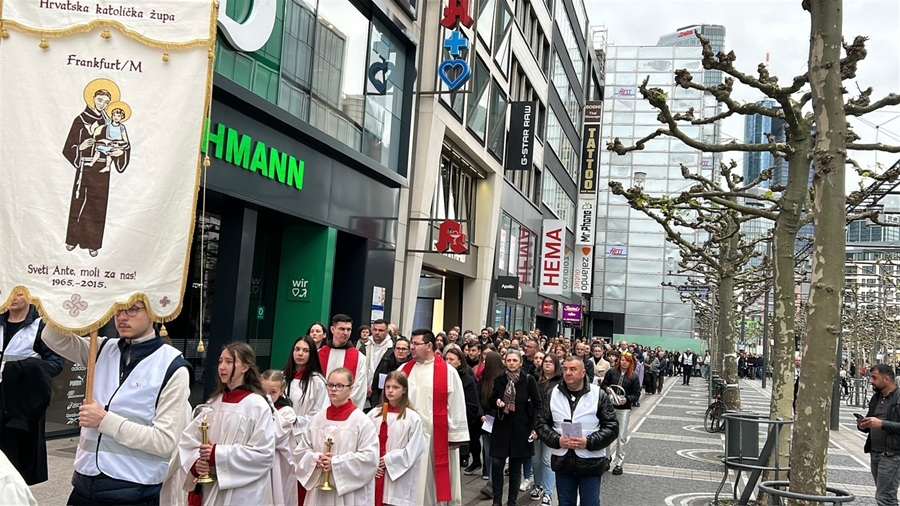 U Frankfurtu na Majni, u ozračju svetog Vazmenog trodnevlja, nakon dirljive Euharistijske večere Gospodnje, Getsemanske ure i cjelonoćnog klanjanja u župnoj kapelici na Veliki četvrtak, vjernički hod se nastavio i na Veliki petak – svečanom procesijom Križnog puta ulicama grada Frankfurta.