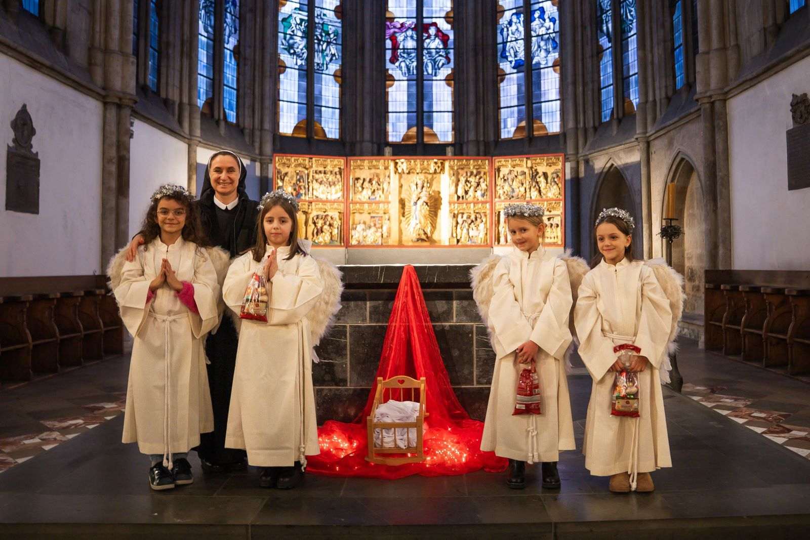 Jednosatni program vodila je poznata TV-voditeljica, scenaristica i urednica Lejdi Oreb. Uime domaćina župni vikar fra Ivan Režić uputio je srdačnu dobrodošlicu voditeljici projekta izgradnje prihvatilišta „Križ“ u Zagrebu, s. dr. Finki Tomas, Stijepu Gleđu Markosu te svima koji su pridonijeli organizaciji humanitarnog koncerta. Među njima su: umjetnica Dragica Batista Bućo, Mario Čuljak, umirovljeni pukovnik Hrvatske vojske Marinko Šušak, hrvatski uznik Dario Kordić te donatori predsjednik Matice hrvatske za Ruhrsko područje Mijo Nujić, predstavnik KSV Croatia Hagen Danijel Bošnjak, predstavnik udruge Mala Kapela Essen Dario Peran te Rade Galić s obitelji, Ante Renić s obitelji i Ivan Renić s obitelji.Nakon koncerta, koji je oduševio okupljene, djecu je pohodio sv. Nikola u pratnji kostimiranih anđela. Za zanimljiv i prigodan program pobrinule su se s. Bora Marki i s. Renata Rapi, uz pomoć Željka Barišića i Laure Rajić. Na kraju proslave župnik fra Vuk zahvalio je svima zaslužnima, uključujući brojne roditelje i goste. U misijskim prostorijama potom je upriličeno druženje i okrjepa za organizatore koncerta i donatore.