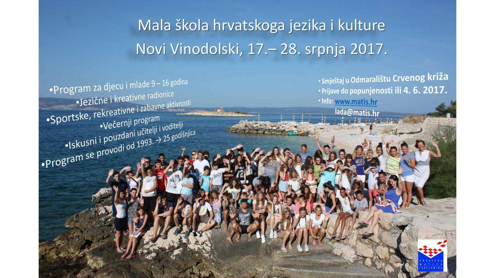 Hrvatska matica iseljenika po jubilarni – dvadeset i peti put – organizira Malu školu hrvatskoga jezika i kulture u Novome Vinodolskom, primorskom ljetovalištu bogate kulturne prošlosti. Temeljni je cilj ovoga ljetovanja da djeca, uzrasta 9-16 godina, koja žive izvan Hrvatske, u zajedništvu s djecom iz različitih mjesta u Hrvatskoj, unaprijede svoje znanje hrvatskog jezika te upoznaju kulturnu i prirodnu baštinu kraja u kojemu borave.