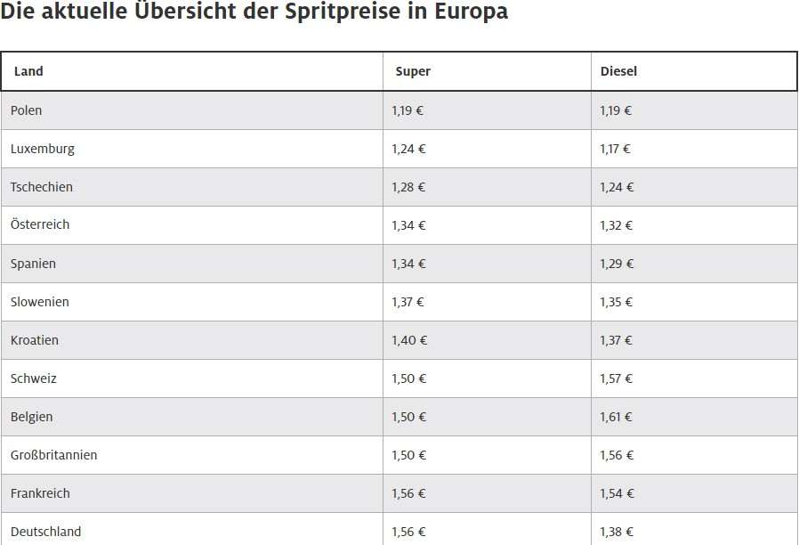 Najskuplji premium benzin je trenutno u Nizozemskoj (1,76 eura / litar), Danskoj (1,61 eura) i Italiji (1,66 eura). Značajno jeftinije gorivo je u Poljskoj, Austriji, Češkoj i Luksemburgu, navodi ADAC.