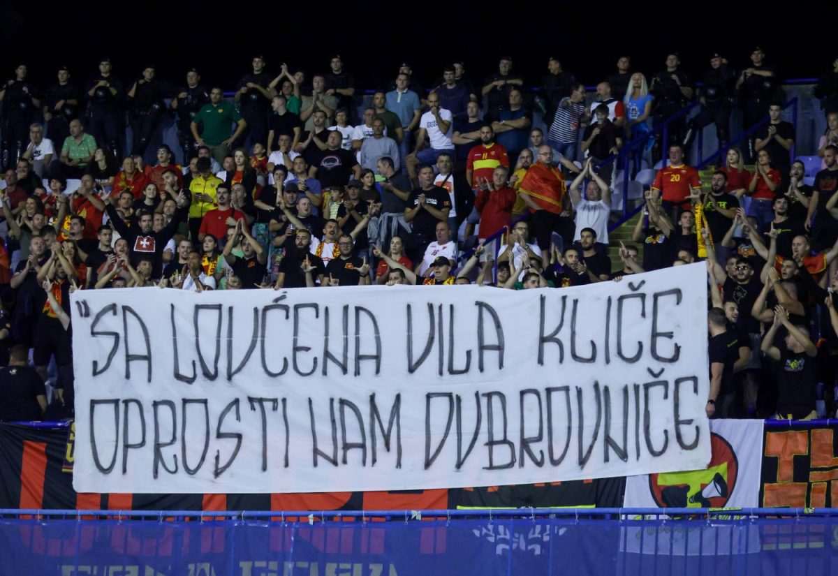 Tijekom utakmice u Maksimiru, u kojoj je Hrvatska s 4:0 savladala Crnu Goru, navijači Crne Gore, njih nekoliko stotina na južnoj tribini, izvjesili su natpis na kojem je pisalo “Sa Lovćena vila kliče, oprosti nam Dubrovniče”