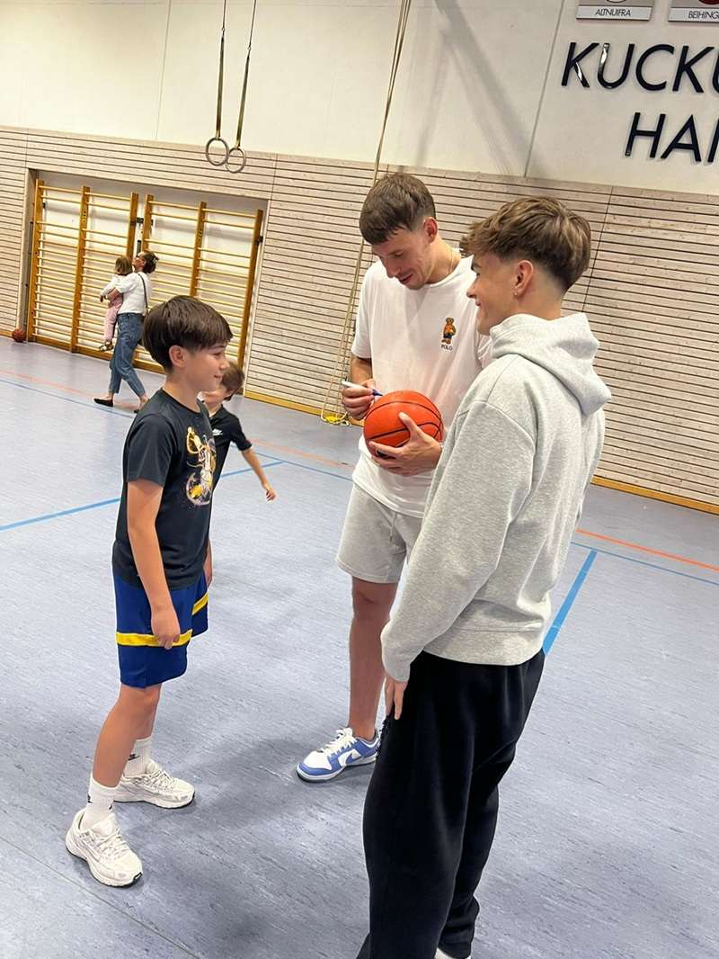 Kad je stigao visoki krilni igrač od 2,07 metara, oči mladih igrača bile su širom otvorene od uzbuđenja.
