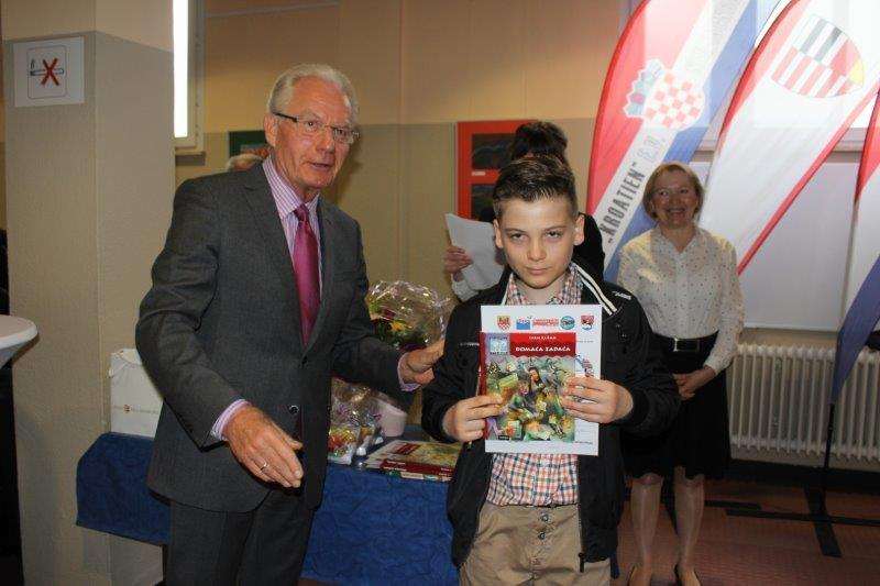 Najvažniji dio samog otvorenja izložbe bila je dodjela nagrada najuspješnijim učenicima HN Hessen. Prigodnim darovima koje su im pripremili Vijeće roditelja HN Hessen, grad Neu-Isenburg te udruga Kroatische Gemeinschaft “Kroatien” e.V. Neu-Isenburg, nagrađeni su sljedeći učenici: Tara Podnar (Wiesbaden) – 2. mjesto, Elias Prstačić (Rodgau) – 3. mjesto te učenici Julija Dugandžić (Frankfurt – Preungesheim), Lorena Rošić (Eschborn), Katarina Topalović (Frankfurt – Bergen-Enkheim), Matija Nađ (Bad Soden), Helena Ćosić (Neu-Isenburg), Adrian Katić (Frankfurt – Preungesheim) i Karla Mula (Saarbrücken) – 4. mjesto.