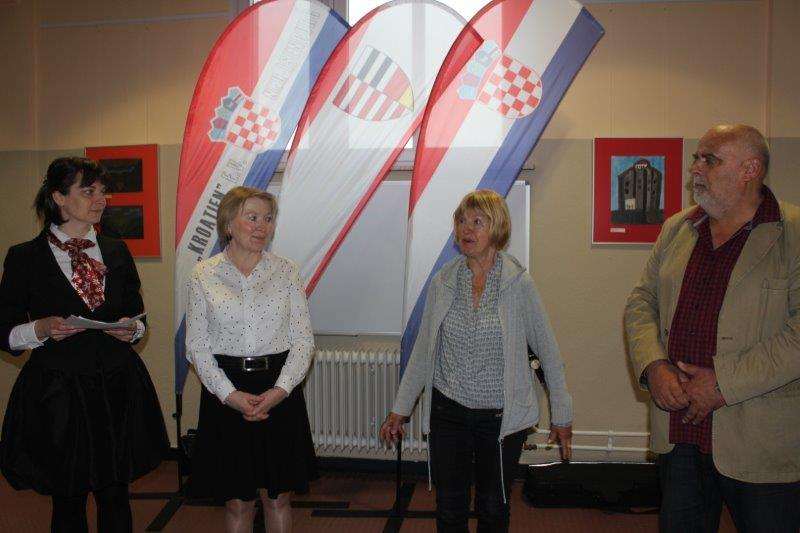 Nakon koordinatoričinih riječi zahvale predsjednici udruge Kroatische Gemeinschaft “Kroatien” e.V. Neu-Isenburg Ivki Bošković, svim članovima Zajednice te Wolfgangu Kuhnu, galeristu, na podršci i pomoći u organizaciji spomenute izložbe, okupljenim uzvanicima obratili su se, pozdravnim riječima, konzulica RH u Frankfurtu, Marica Jukić, gradonačelnik grada Neu-Isenburga, Herbert Hunkel, bračnom paru Karačić te Ivka Bošković, predsjednica udruge Kroatische Gemeinschaft “Kroatien” e.V. Neu-Isenburg. Svi oni nisu krili oduševljenje velikim brojem na natječaj pristiglih radova, ljepotom i kreativnošću izloženih učeničkih radova, istodobno naglašavajući važnost njegovanja dvojezičnosti, likovnog izražavanja te povezivanja likovno nadarene hrvatske djece s različitih strana svijeta.