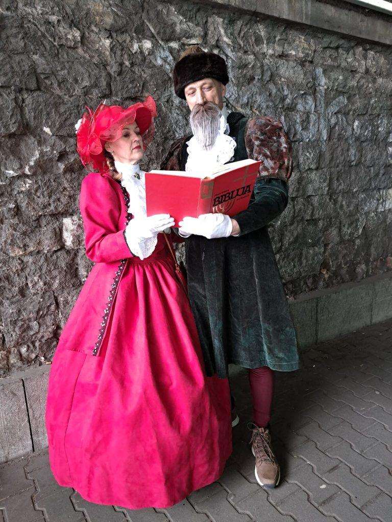 Žene su plijenile pozornost odjevene u starogradske zagrebačke haljine, a muškarci su bili odjeveni u elegantne crno-bijele frakove s crvenim rupcem.