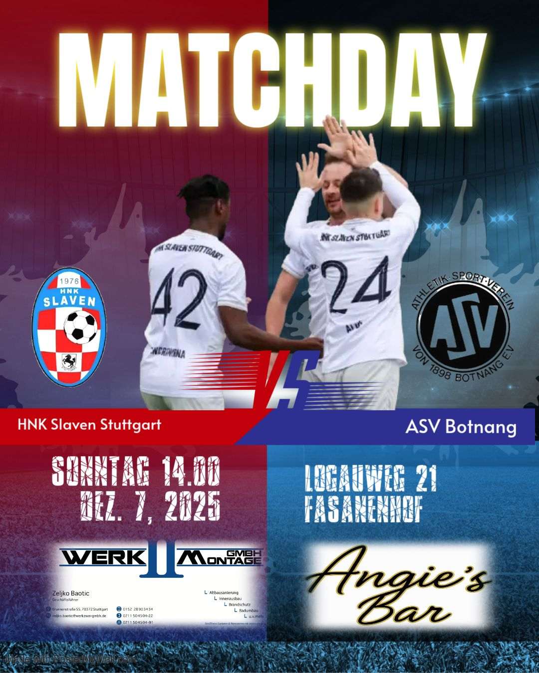 U nedjelju, 7. prosinca 2025., Slaven igra svoju posljednju domaću utakmicu ove godine protiv ASV Botnang II. Klub poziva sve navijače da dođu i podrže momčad u 14:30 sati na adresi Logauweg 21, Stuttgart-Fasanenhof. Cilj je dosegnuti najmanje 100 gledatelja i stvoriti nezaboravnu atmosferu.