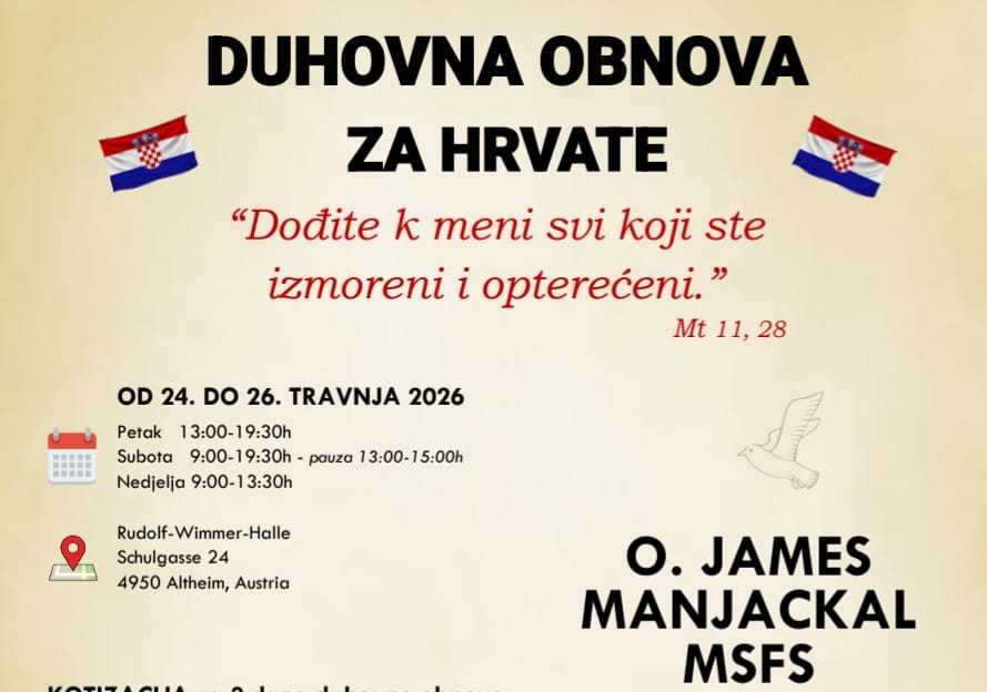 DUHOVNA OBNOVA U AUSTRIJI: Poznati svjetski misionar o. James Manjackal predvodi trodnevni susret za Hrvate