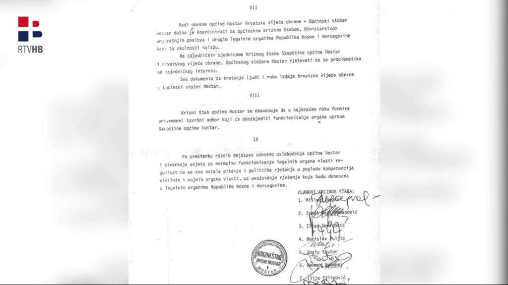 Pogledajte video hrvatske televizije Herceg Bosne o dokumentu kojim je prije 29 godina obrana Mostara povjerena HVO-u i priznata hrvatska zajednica Herceg-Bosne.