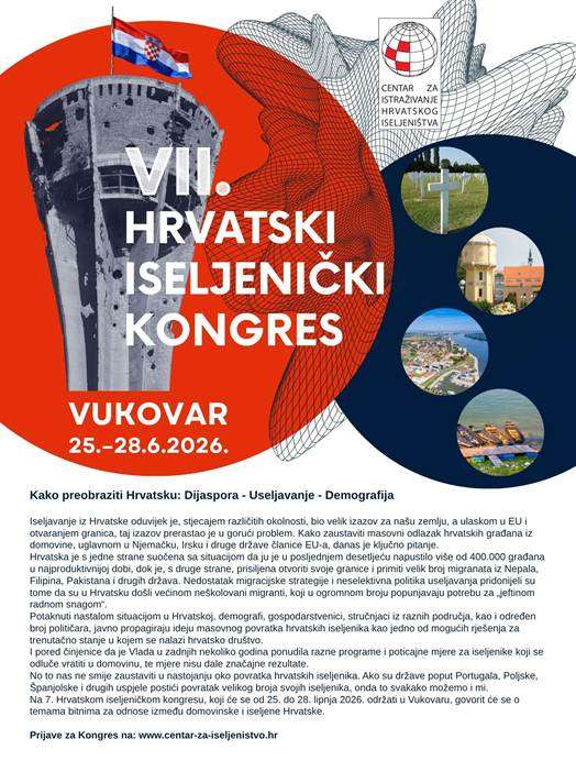 Vukovar će od 25. do 28. lipnja 2026. godine biti domaćin 7. Hrvatskog iseljeničkog kongresa, prestižnog događaja koji okuplja Hrvate iz domovine, Bosne i Hercegovine, iseljeništva te zemalja u kojima Hrvati žive kao manjinske zajednice.